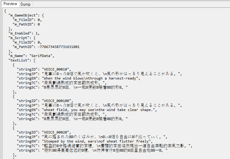 그래서 공개번역 준비+스크립트가 어떻게 들어가있나 알아보려고 AssetStudio를 이용해 열어봤다.