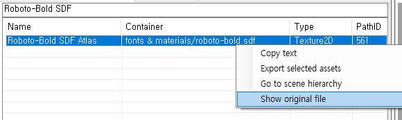 Roboto-Bold SDF 폰트의 텍스쳐 파일은 sharedassets0.assets 파일의 561번 에셋,