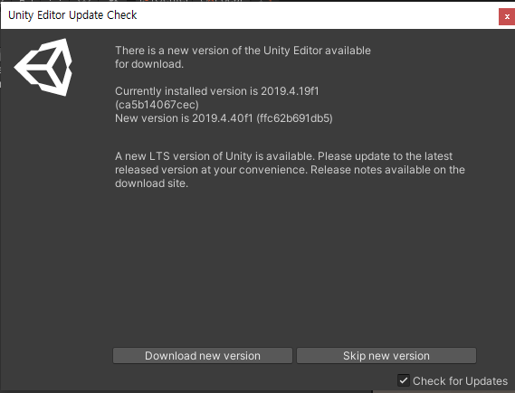 -> 마찬가지로 unityplayer.dll의 속성을 통해 확인 시에도 뒷부분은 자르고 "2019.4.19"까지만 알아두자.