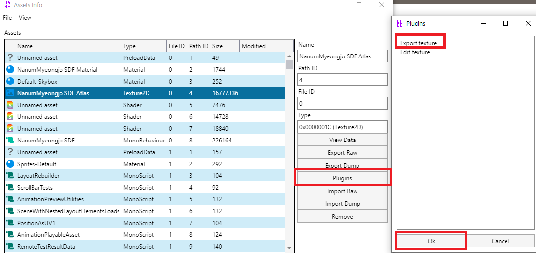 Filter Type을 Texture2D/Monobehaviour로 각각 바꾼 후 나오는 항목의 "PathID"를 기억해두자.