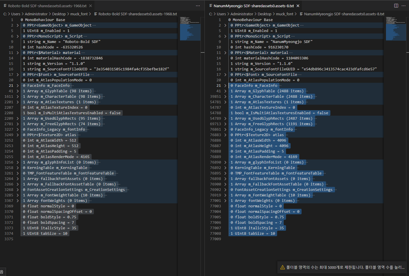 새로 빌드한 폰트용 게임에서 dump한 MonoBehaviour 파일을 열어보자.