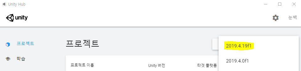 구버전 Unity Hub: 프로젝트->새로 생성 우측 화살표 아이콘 (없을 땐 그냥 새로 생성 클릭) -> 해당 버전 클릭