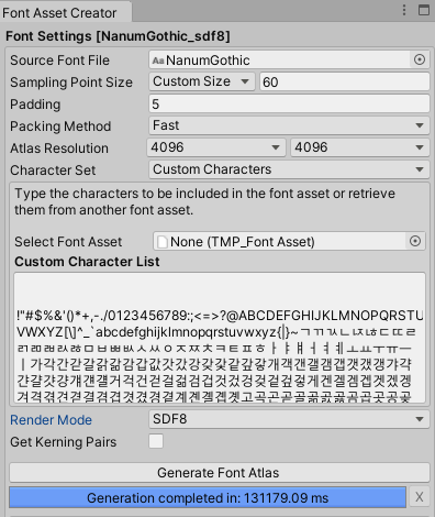 0 FontAssetCreationSettings -> 폰트 제작시 셋팅들.