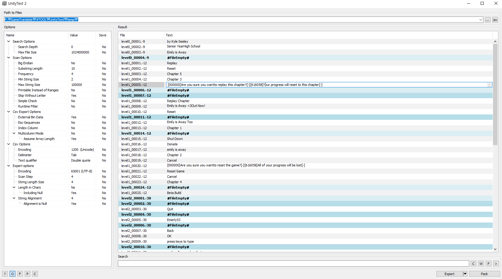 암특 늑향 번역할 때는 저 옵션으로 추출했었고, import시 오류가 있어서 쓰지 않았던 거로 기억한다.