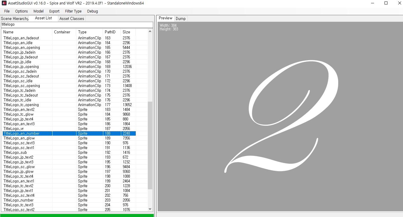 이미지/대사 에셋을 쉽게 확인 가능하며, 파일 타입, PathID, 어느 파일에 들어있는지도 확인 가능하다.