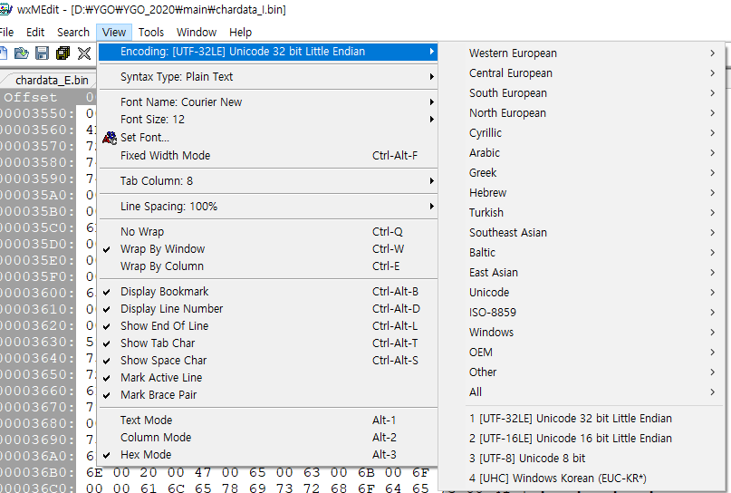 wxMEdit는 지원하는 인코딩이 굉장히 많아서, UTF-32LE같은 일반 hex editor로 수정하기 힘든 것들을 알아보고, 수정하기 편리하다.