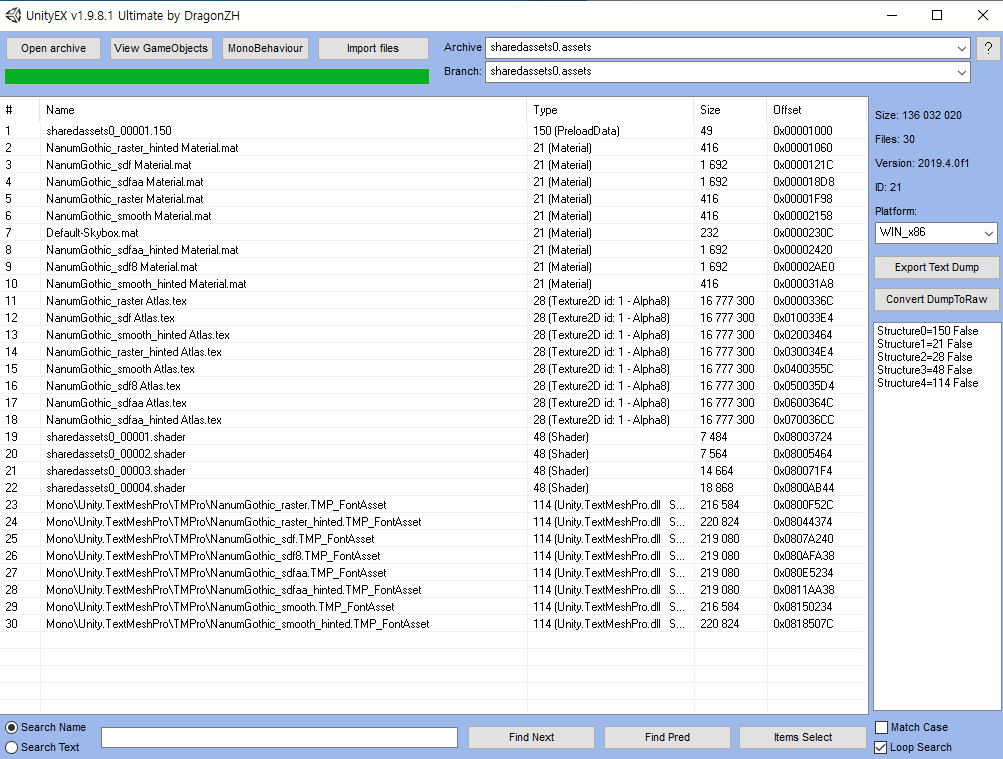 UABE나 UnityEX와는 확연히 다른 형태이다.