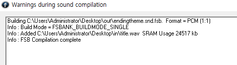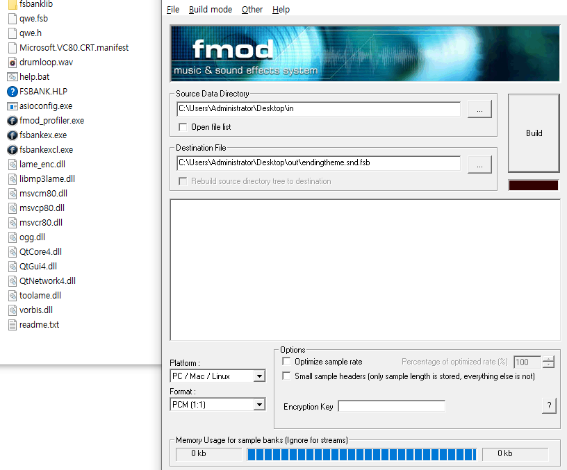 4. fmod_sample_bank_generator_ex_1.68를 이용해 새 wav 파일을 fsb 파일로 바꿔야 한다.