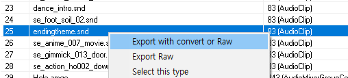 이후, 바꾸고자 하는 사운드 파일을 우클릭 -> Export with convert or Raw를 눌러 추출한다.
