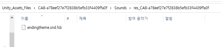 추출한 파일을 확인해보면, {파일명}.snd.fsb인 것을 확인할 수 있다.