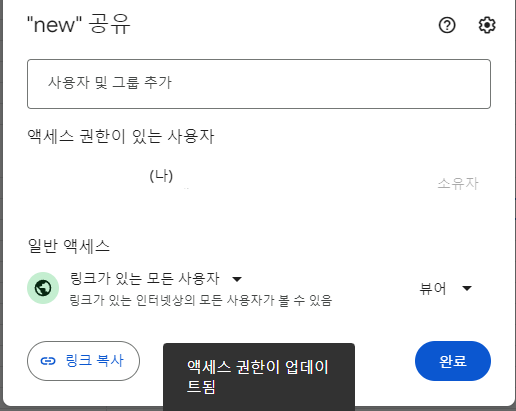 우선 권한을 '링크가 있는 모든 사용자'로 업데이트한다.