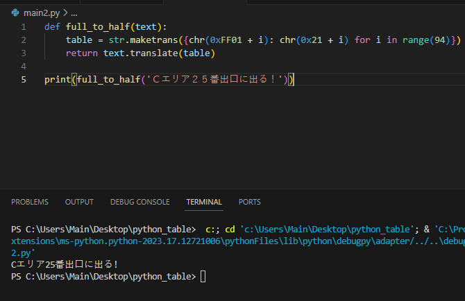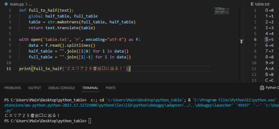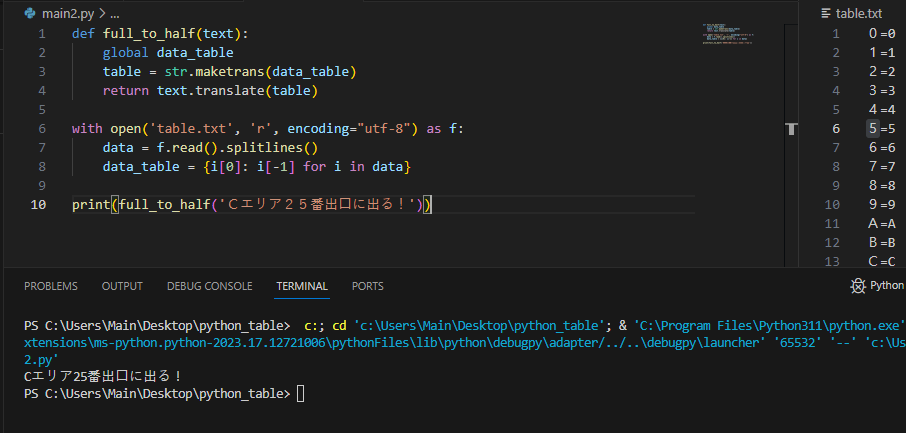 2. 전각 -> 반각 (문자열 범위 및 maketrans 이용)
