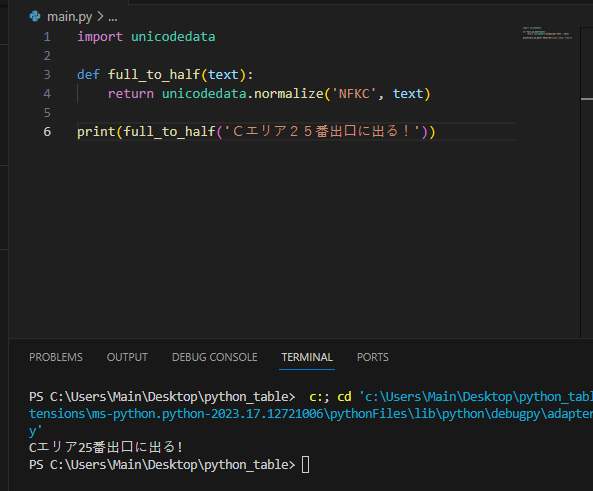 일반적으로 전각 -> 반각을 하고싶은 경우, unicodedata.nomalize를 사용하면 된다.