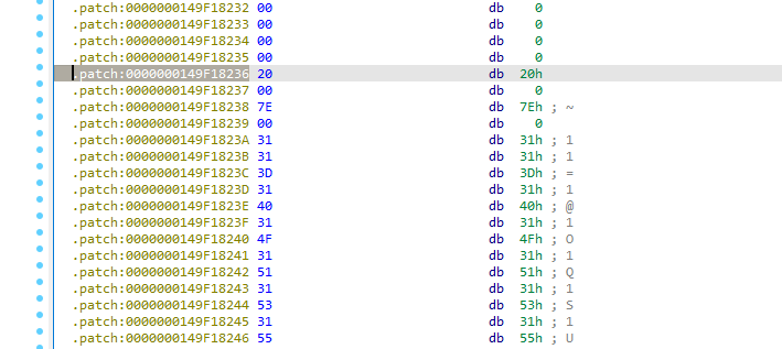 .patch 섹션에 코드케이브 파놓기 (아까 봐뒀던 글리프 데이터 시작 위치를 mov rax, {데이터위치}로 넣어줌)