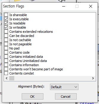 코드 케이브에서 코드 실행이 가능해야 하니까 Is executable 체크