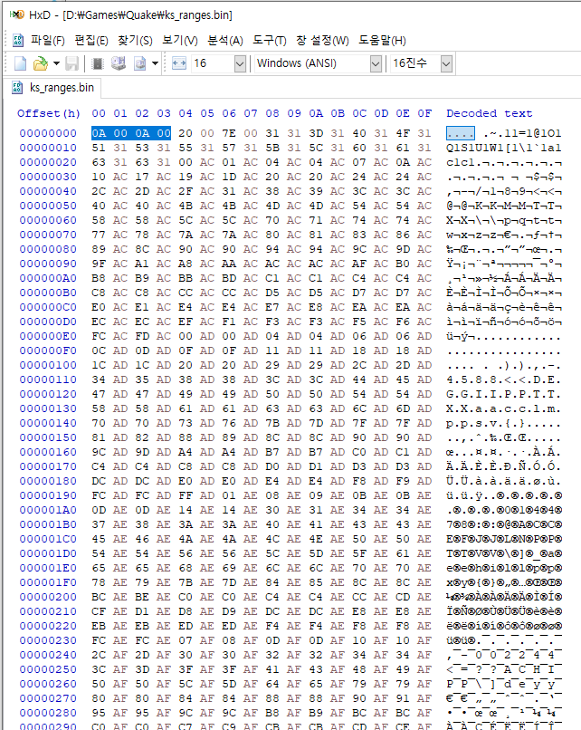 f_out.write(byte_sequence)일단 다운받은 KS1001 텍스트 파일에서 unicode range 추출, ImGUI 형식에 맞게 바이너리로 변환